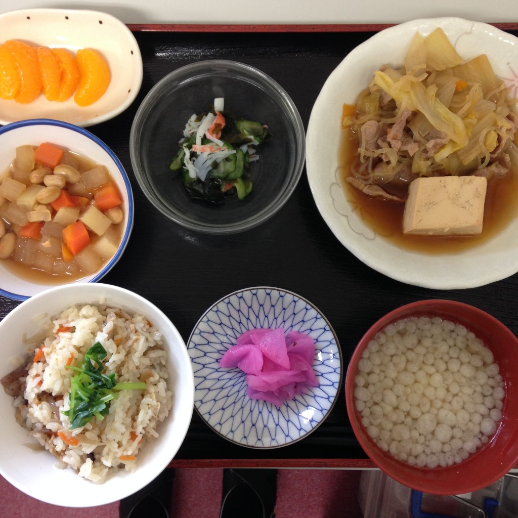 炊き込みごはんとすき煮