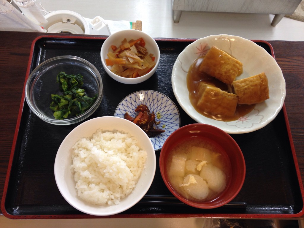 肉詰め厚揚げ豆腐のあんかけ